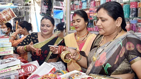करवां चौथ के पर्व पर सुहागिनें पति के दीर्घायु होने की कामना के साथ करवां का पूजन कर पूरे दिन अन्न जल का त्याग कर व्रत रखती हैं। इस दिन का हिंदू समुदाय में विशेष महत्व है। करवा चौथ का पर्व सुहागिन महिलाएं बड़े ही धूमधाम के साथ मनाती हैं। पर्व को लेकर महिलाओं द्वारा दशहरा के बाद से ही तैयारियां शुरू कर दी जाती हैं। बाजार में महिलाओं की भीड़ उमड़ रही है। नए वस्त्रों के साथ-साथ चूड़ी व श्रृंगार का सामान खूब बिक रहा है। चूड़ी वाली गली में चूड़ी विक्रेता अनीस ने बताया कि पर्व को लेकर विभिन्न वैरायटी की चूड़ियां उपलब्ध हैं। जो महिलाओं को अपनी ओर आकर्षित कर रही हैं। पर्व के चलते महिलाओं की भीड़ उमड़ रही हैं। शनिवार को बाजार में और अधिक भीड़ देखी जाएगी। इसके अलावा ज्वैलर्स की दुकानों में भी महिलाओं को खरीददारी करते देखा गया। जो अपने लिए पायल, बिछिया आदि गहनों की खरीददारी करती रहीं।