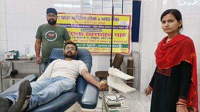 बिंदकी कोतवाली क्षेत्र के पक्का तालाब निवासी कप्तान सिंह का 15 महीने का पुत्र शुभम सिंह बुखार से पीड़ित है। जिसका इलाज शहर के एक निजी नर्सिंग होम में चल रहा है। बुखार के कारण मासूम के शरीर में रक्त की कमी हो गई। चिकित्सक ने शुभम के लिए तत्काल 125 एमएल एबी पॉजिटिव ब्लड की जरूरत बताई। तभी बच्चे के लिए ब्लड बैंक से सर्व फॉर ह्यूमैनिटी टीम के पास कॉल आई। बताया कि बच्चे को एबी पॉजिटिव फ्रेश ब्लड की जरूरत है। जैसे ही केस सर्व फार ह्यूमैनिटी ग्रुप में डाला गया ग्रुप के एक्टिव मेंबर एवं देवीगंज मुहल्ला निवासी प्रदीप चौरसिया तत्काल रक्तदान के लिए तैयार हो गए। देर न करते हुए प्रदीप चौरसिया ब्लड बैंक पहुंचे और अपना 09 वां स्वैच्छिक एबी पॉजिटिव रक्त रक्तदान किया। जिससे मरीज के तीमारदार कप्तान सिंह को ब्लड दिया। टीम की सेवाभाव देखते हुए कप्तान ने भी रक्तदान कर टीम को डोनर कार्ड उप्लब्ध करवाया। जिससे टीम आगे भी जरूरतमंद की मदद कर सके। इसमौके पर गुरमीत सिंह, ब्लड बैंक से प्रवीण प्रसून, चंद्रबाला उपस्थित रहे।