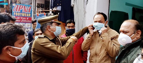 उद्योग व्यापार मंडल उत्तर प्रदेश के संस्थापक अध्यक्ष किशन मेहरोत्रा व कोतवाली प्रभारी अरूण चतुर्वेदी चौक चौराहा पहुंचे। जहां से जागरूकता अभियान की शुरूआत की गई। पदाधिकारियों एवं पुलिस ने सभी दुकानदारों के बीच मास्क का वितरण किया। अपील किया कि वह मास्क लगाकर ही दुकान में बैठें और आने वाले ग्राहकों से भी मास्क लगाने की अपील करें। मास्क नहीं तो सामान नहीं का पालन किया जाए। जिससे कोरोना व ओमिक्रोन वायरस को बढ़ने से रोका जा सके। सभी व्यापारियों एवं ग्राहकों को सोशल डिस्टेंसिंग का पाठ भी पढ़ाया गया। संस्थापक अध्यक्ष ने व्यापारियों से अपील किया कि कोरोना जैसी घातक बीमारी के बचाव हेतु समस्त गाइड लाइन का पालन करें। इस अवसर पर अनिल वर्मा, मनोज साहू, मनोज मिश्रा, मो. अंजुम, कृष्ण कुमार तिवारी, गुरुमीत सिंह, गंगा सागर, प्रेमदत्त उमराव, संजय श्रीवास्तव, राजन गुप्ता, प्रमोद तिवारी भी मौजूद रहे।