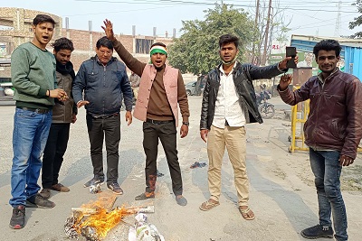 फतेहपुर :- बजट को नौजवान विरोधी बताते हुए युवा कांग्रेसियों ने वित्त मंत्री निर्मला सीतारमण का पुतला आग के हवाले करके विरोध प्रदर्शन किया। कांग्रेसियों ने कहा कि यह बजट खोखला है। उद्योगपतियों को देखकर बजट बनाया गया है। कहा कि यदि वित्त मंत्री ने मांफी नहीं मांगी तो इसका विरोध गली-गली किया जाएगा।