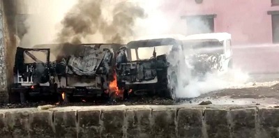 फतेहपुर। जिला अस्पताल के जिला क्षय रोग परिसर में खड़ी कंडम चार पहिया गाडियों में सोमवार को अचानक आग लग जाने से अफरा तफरी मच गई। तभी सूचना पाकर घटनास्थल पहुंची फायर बिग्रेड की टीम ने गाड़ियों में लगी पर आधे घंटे में ही काबू पा लिया। क्षय रोग अधिकारी के अनुसार किसी अराजकतत्व ने वाहनों में आग लगाई है। अग्निकाण्ड के बाद क्षय रोग अधिकारी सहित अन्य कर्मचारी मौके पर मौजूद रहे। हलांकि इस अग्निकांड में किसी के भी हाताहात होने का मामला प्रकाश में नहीं आया है। अगर समय रहते फायर बिग्रेड की गाड़ी न पहुंची तो वहां मौजूद सभी गाड़िया जलकर खाक हो जाती। अग्निकांड में चार जीप पूरी तरह से जलकर खाक हो गई हैं।