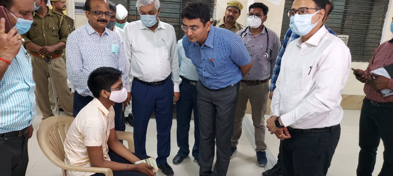 प्रयागराज :- जिलाधिकारी श्री संजय कुमार खत्री ने मोती लाल नेहरू मेडिकल कालेज में 12 से 14 वर्ष आयु तक के बच्चों का चल रहा टीकाकरण का निरीक्षण किया। मेडिकल कॉलेज में कोविड वैक्सीनेशन का शुभारंभ जिलाधिकारी श्री संजय कुमार खत्री ने फीता काटकर किया। निरीक्षण के दौरान उन्होंने बच्चों से वार्ता भी किया तथा मुख्य चिकित्साधिकारी को निर्देशित किया है कि स्कूलों में कैम्प लगाकर शत-प्रतिशत बच्चों का टीकाकरण कराया जाये। कोरोना की वैश्विक महामारी के खिलाफ जंग अभी भी जारी है। आज से 12 साल से 14 साल के बच्चों को भी वैक्सीनेशन की शुरुआत हो गई है। 12 साल से 14 साल के बच्चों को कोर्बेवैक्स ( Corbevax ) वैक्सीन लगाई जा रही है। इस मौके पर कोविड वैक्सीनेशन के नोडल डॉ उत्सव सिंह के मुताबिक 12 से 14 साल के बच्चों को पहली डोज के बाद 28 दिन के अंतराल पर दूसरी डोज लगेगी। पहले दिन आन स्पॉट रजिस्ट्रेशन कर वैक्सीन लगाई जा रही है। प्रयागराज में मेडिकल कॉलेज के वैक्सीनेशन सेंटर पर सबसे पहले छठवीं के छात्र श्रीश भट्टाचार्य ने वैक्सीन लगवाई। वैक्सीनेशन को बढ़ावा देने के लिए स्कूलों को चिन्हित किया जा रहा है। इसके बाद वैक्सीनेशन की शुरुआत स्कूलों से की जाएगी और बचे हुए बच्चों को बाद में अभियान चलाकर वैक्सीनेशन लगाया जायेगा। उनके मुताबिक 12 से 14 साल के जिले में दो लाख 52 हजार बच्चों को यह वैक्सीन लगाए जाने का लक्ष्य रखा गया है। निरीक्षण के दौरान प्रधानाचार्य मोतीलाल नेहरू मेडिकल कालेज श्री एस0पी0 सिंह, मुख्य चिकित्साधिकारी श्री नानक सरन सहित सम्बंधित अधिकारीगण उपस्थित रहे।