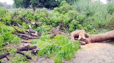 ललौली थाना क्षेत्र के सिधांव गांव में बेखौफ ठेकेदारों ने किसान कल्लू सिंह पुत्र छोटेलाल सिंह के नीम के तीन हरे पेड़ों को इलेक्ट्रॉनिक आरे से काटकर धराशाई कर दिया। सूचना पर वन विभाग की टीम के पहुंचने से पहले ही ठेकेदार अपने गुर्गों के साथ भाग खड़ा हुआ। ग्रामीणों की सूचना पर वन दरोगा शिवमंगल यादव व सिपाही बृजेश कुमार मौके पर जाकर जांच पड़ताल किया और ललौली थाने जाकर पेड़ मालिक कल्लू सिंह निवासी सिधांव थाना ललौल के खिलाफ वन अधिनियम के तहत मुकदमा दर्ज कराया है। थानाध्यक्ष आलोक पांडेय ने बताया कि वन विभाग की तहरीर पर पेड़ मालिक के खिलाफ वन अधिनियम के तहत मुकदमा दर्ज किया गया है। आरोपी ठेकेदार का पता लगाया जा रहा है।