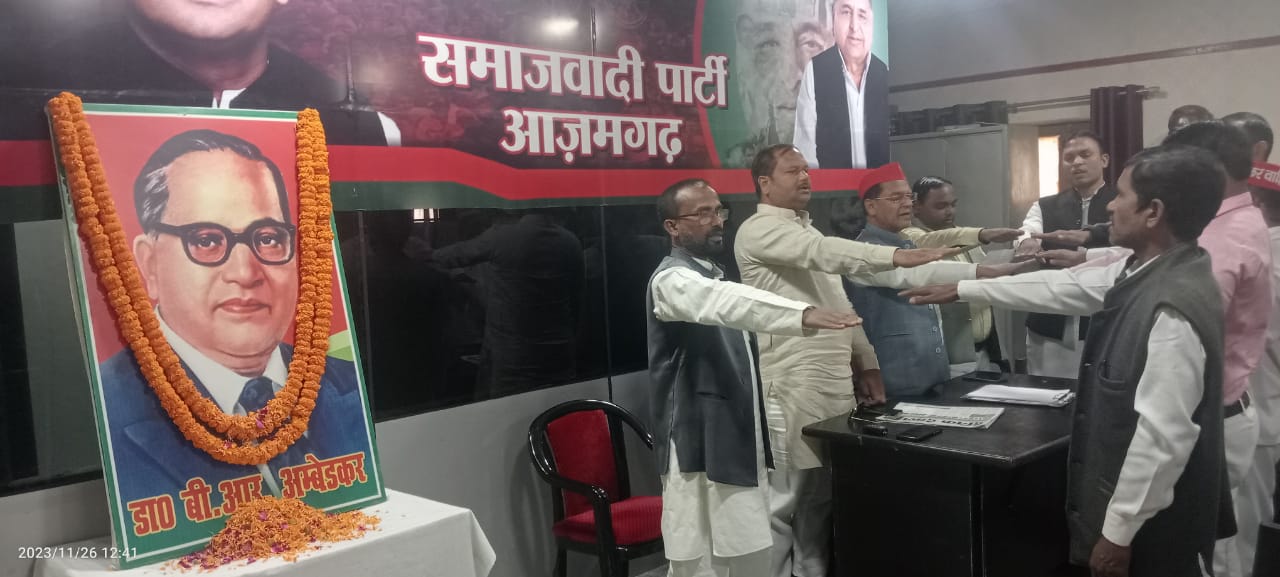 आजमगढ़ :- समाजवादी पार्टी कार्यालय, आजमगढ़ पर 74वां संविधान दिवस अंबेडकर पार्क में बाबा साहब डा.भीमराव अंबेडकर जी की मूर्ति पर माल्यार्पण किया व पार्टी कार्यालय पर आयोजित गोष्ठी में संविधान के संबंध में चर्चा हुई।