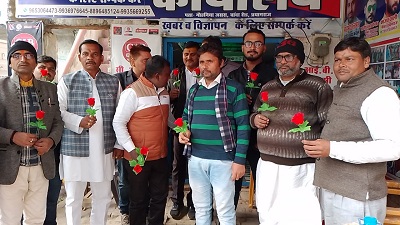 प्रयागराज यमुना नगर के गौहनिया बांदा रोड़ पर क्राइम इनफार्मेशन ब्यूरो आफ इंडिया के कार्यालय पर मंडल अध्यक्ष परवेज आलम के नेतृत्व में नववर्ष के अवसर पर समस्त पत्रकारो के साथ बड़े ही हर्षोल्लास पूर्वक मनाया देशवासियों और सभी पत्रकारों को दी गई शुभकामनाएं नए वर्ष की मुबारकबाद व एक दूसरे को गुलाब का फूल देखकर मुबारकबाद दी ।