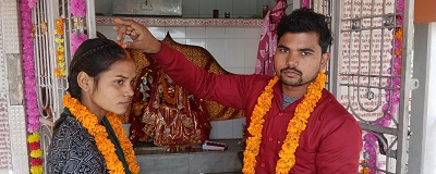 आजमगढ़ :- दीदारगंज थाना क्षेत्र से है , जहाँ प्रेमी युगल ने लोक लाज की परवाह किये बगैर मंदिर में शादी रचा लिया …बताया जा रहा है कि एक दूसरे के प्यार में डूबे प्रेमी युगल के प्यार को जब परिजनों ने स्वीकार नहीं किया तो उन्होंने मिर्जा जगदीशपुर हनुमान मंदिर के प्रांगण में दुर्गा माता के मंदिर पर पहुंच कर शादी रचा ली ..परिवार वालों की रजामंदी न मिलने के बावजूद भी प्रेमी युगल ने एक दूसरे का साथ देने की ठानी …..दोनों प्रेमियों का कहना था कि हम लोगों के शादी के लिए घर वाले राजी नहीं हो रहे थे …..हमको जान से मारने की धमकी भी मिल रही थी …इसलिए हम कोर्ट द्वारा मैरिज कर लिए थे …..और अब मंदिर में पहुंचकर प्रेमी युगल ने एक दूसरे को माला पहनना जीवन भर साथ निभाने का वादा किया …प्रेमी युगल का कहना था हम लोग मार्टिनगंज विद्यालय में पढ़ते थे 8 वर्षों से हम लोगों का प्रेम चल रहा था…बतादें कि प्रेमी का नाम रंजीत पुत्र श्याम धारी है …ग्राम बनगांव आजमगढ़ है , जबकि प्रेमिका मधु पुत्री विनोद महूजा नेवादा थाना बरदह आजमगढ़ की रहने वाली है ..