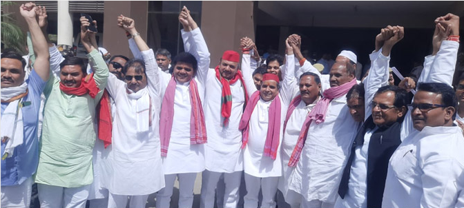 खबर आज़मगढ़ ज़िले से है ….जहाँ आज समाजवादी पार्टी के सदर और लालगंज के दोनों प्रत्याशियों ने अपना नामांकन पत्र दाखिल किया …नामांकन दाखिल करने से पहले पूरे विधि-विधान से पूर्व सांसद वसपा प्रत्याशी धर्मेन्द्र यादव ने पूजा अर्चना किया . इसके बाद धर्मेन्द्र यादव की बहन अंजलि यादव ने तिलक लगाकर आरती उतारकर धर्मेन्द्र यादव की जीत की प्रार्थना किया . इसके बाद धर्मेन्द्र यादव नामांकन करने पहुंचे . इस दौराम एमएलसी व वरिष्ठ नेता बलराम यादव , एमएलसी शाह आलम गुड्डू जमाली , विधायक संग्राम यादव , विधायक नफीस अहमद , विधायक दुर्गा प्रसाद यादव जिलाध्यक्ष हवलदार यादव , लालगंज के प्रत्याशी दरोगा सरोज आदि लोग मौजूद रहे . नामांकन करने के पश्चात धर्मेन्द्र यादव ने मीडिया से बातचीत करते हुए कहाकि सबसे पहले आज के दिन मैं नेता जी मुलायम सिंग यादव को नमन करता हूँ . क्योंकि मुलायम सिंह यादव ने अपने खून – पसीने से इस जिले को सींचा है , जिसकी वजह से यहाँ के दस के दस विधायक विधानसभा में हैं . उन्होंने कहाकि हमें और हमारे लालगंज के साथी दरोगा सरोज को यहाँ की जनता आशीर्वाद देकर देश की सबसे बड़ी संसद में भेजने का काम करेगी .. उन्होंने कहाकि मैं आजमगढ़ के जनमानस को विश्वास और भरोसा दिलाता हूँ , जिस उद्देश्य से राष्ट्रीय अध्यक्ष अखिलेश यादव ने मुझे भेजा है , मैं उसपर खरा उतरने का प्रयास करूंगा .यहाँ की जनता की आवाज़ बनने का काम करूंगा .