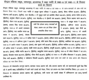 सेंट्रल पब्लिक स्कूल ग्रुप के प्रबंधक नवाज अहमद खाँ और आज़ाद अहमद खान ने छात्रों को शुभकामनाएँ देते हुए कहा, “यह केवल अंक प्राप्त करने की बात नहीं, बल्कि यह मेहनत और लगन का परिणाम है, जो छात्रों को आगे सफलता की राह दिखाएगा।”उन्होंने कहाकि “अभिभावकों के सहयोग से बच्चों ने किया बेहतरीन प्रदर्शन”…रिजल्ट वितरण समारोह में स्कूल प्रशासन के साथ बड़ी संख्या में अभिभावक भी शामिल हुए। बच्चों के उत्कृष्ट प्रदर्शन से अभिभावकों में गर्व की भावना देखने को मिली।