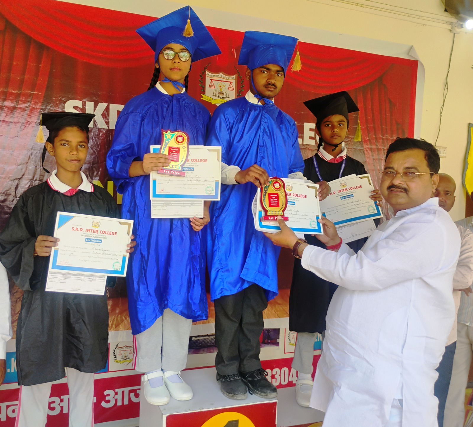 समारोह के मुख्य अतिथि एसकेडी एजुकेशनल ग्रुप के संस्थापक विजय बहादुर सिंह ने परीक्षाफल घोषित कर मेधावियों को पुरस्कृत किया। सम्मान प्राप्त करने के दौरान छात्रों के चेहरे खुशी से खिल उठे। पुरस्कार वितरण कार्यक्रम देर तक चलता रहा और इस दौरान विद्यार्थियों का मनोबल बढ़ाने के लिए अभिभावकों एवं गणमान्य व्यक्तियों की तालियों की गूंज से पूरा परिसर गूंज उठा।