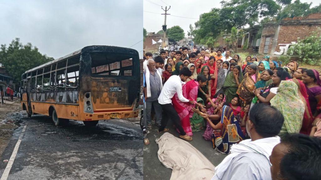 आज़मगढ़ में स्कूल बस की चपेट में आने से 11 वर्षीय बालक की मौत, आक्रोशित ग्रामीणों ने बस में लगाई आग