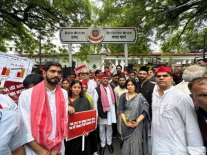 नई दिल्ली। समाजवादी पार्टी के राष्ट्रीय अध्यक्ष व पूर्व मुख्यमंत्री अखिलेश यादव तथा पार्टी के मुख्य सचेतक व सांसद धर्मेन्द्र यादव के नेतृत्व में सोमवार को सपा के सभी सांसदों ने S.I.R. के विरोध में चुनाव आयोग की ओर पैदल मार्च निकाला। यह मार्च संसद से चुनाव आयोग के कार्यालय तक ले जाया जा रहा था, लेकिन रास्ते में केंद्र की भाजपा सरकार के निर्देश पर पुलिस ने कड़े सुरक्षा इंतजाम और बैरिकेडिंग लगाकर प्रदर्शनकारियों को रोकने का प्रयास किया।