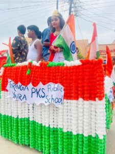 सुबह से ही विद्यालय परिसर देशभक्ति के गीतों और नारों से गूंज रहा था। “भारत माता की जय” और “हिंदुस्तान जिंदाबाद” के नारे गली-गली में गूंजते हुए लोगों के मन में उत्साह भर रहे थे। बच्चों ने हाथों में तिरंगा और देशभक्ति से जुड़े प्लेकार्ड थामे हुए पूरे नगर में परेड की, जिससे माहौल पूरी तरह स्वतंत्रता दिवस के रंग में रंग गया।